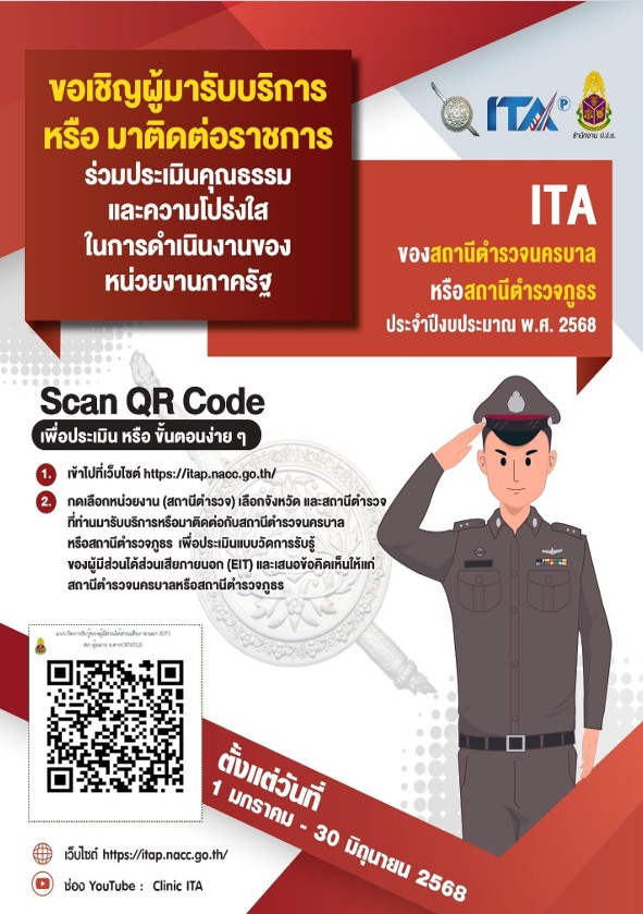 - การขับเคลื่อนโครงการประเมินคุณธรรม และความโปร่งใสในการดำเนินงานภาครัฐ (Integrity and Transparency Assessment: ITA) ของสถานีตำรวจ ประจำปีงบประมาณ 2568