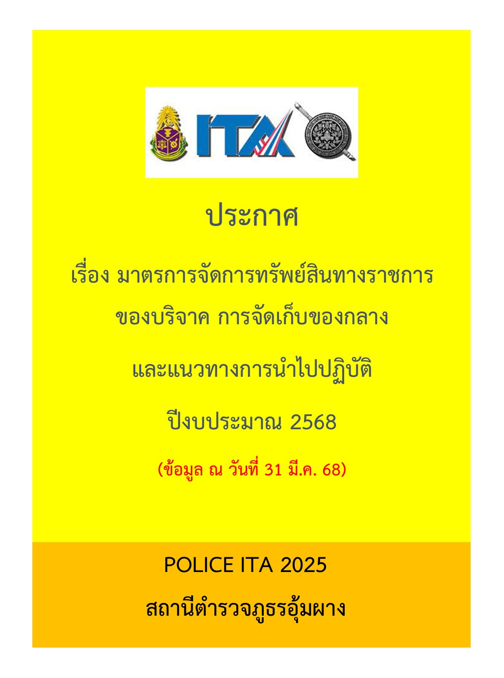 1. ประกาศ “มาตรการจัดการทรัพย์สินทางราชการ ของบริจาค และการจัดเก็บของกลาง”