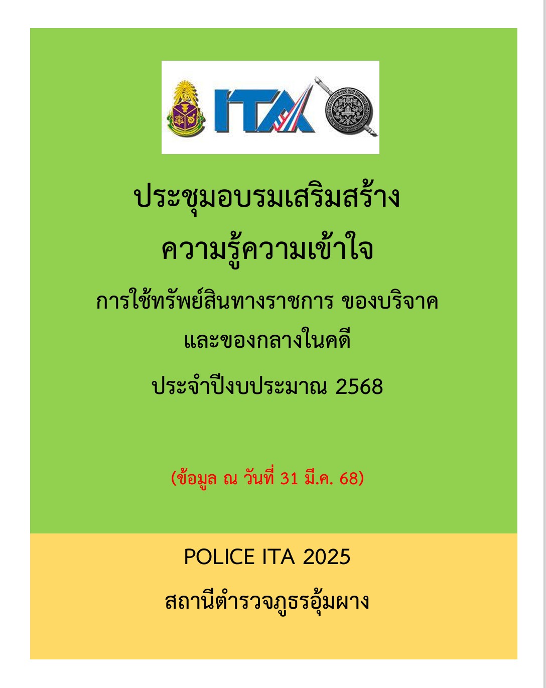 - กำชับการปฏิบัติเกี่ยวกับการใช้อาวุธปืน (ข้อมูล ณ วันที่ 31 มี.ค. 68)