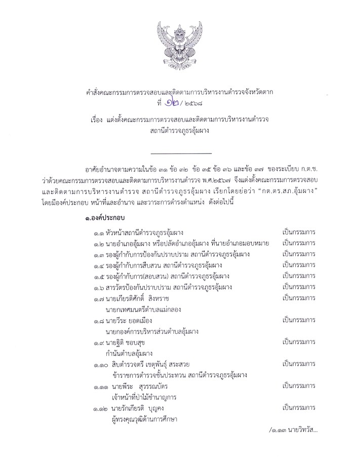 - คำสั่งแต่งตั้ง กต.ตร.สภ.อุ้มผาง จ.ตาก (ข้อมูล ณ วันที่ 23 มี.ค. 68)